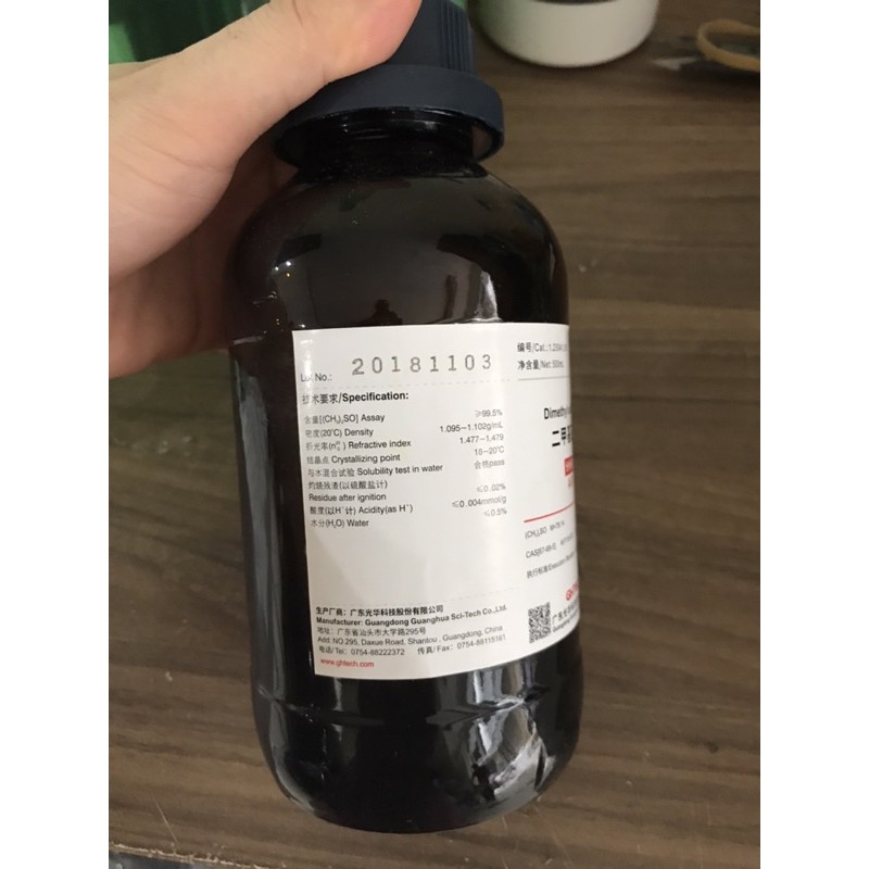 Giới thiệu Hoá chất Dimethyl sulfoxide DMSO CAS 67-68-5 C2H6SO chai 500ml