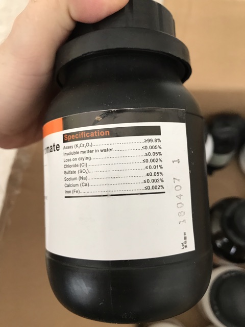 Giới thiệu Hóa chất Potassium dichromate CAS 7778-50-9 K2Cr2O7 lọ 500g kali dichromat