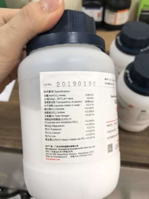 Nhà cửa & Đời sống > Làm vườn > Phân bón || Hóa chất Sodium hydrogen carbonate NaHCO3 99.5% lọ 500g natri cacbonat Xilong CAS 144-55-8Còn hàng