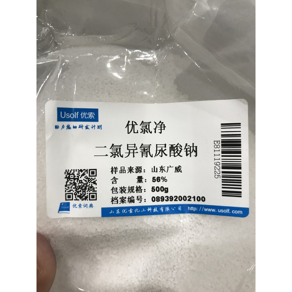 Nhà cửa & Đời sống > Chất khử mùi, làm thơm nhà > Khác || Hóa chất Sodium dichloroisocyanurate 56% túi 500g CAS 2893-78-9 Sodium troclosene Sodic troclosene NaDCC or SDICCòn hàng