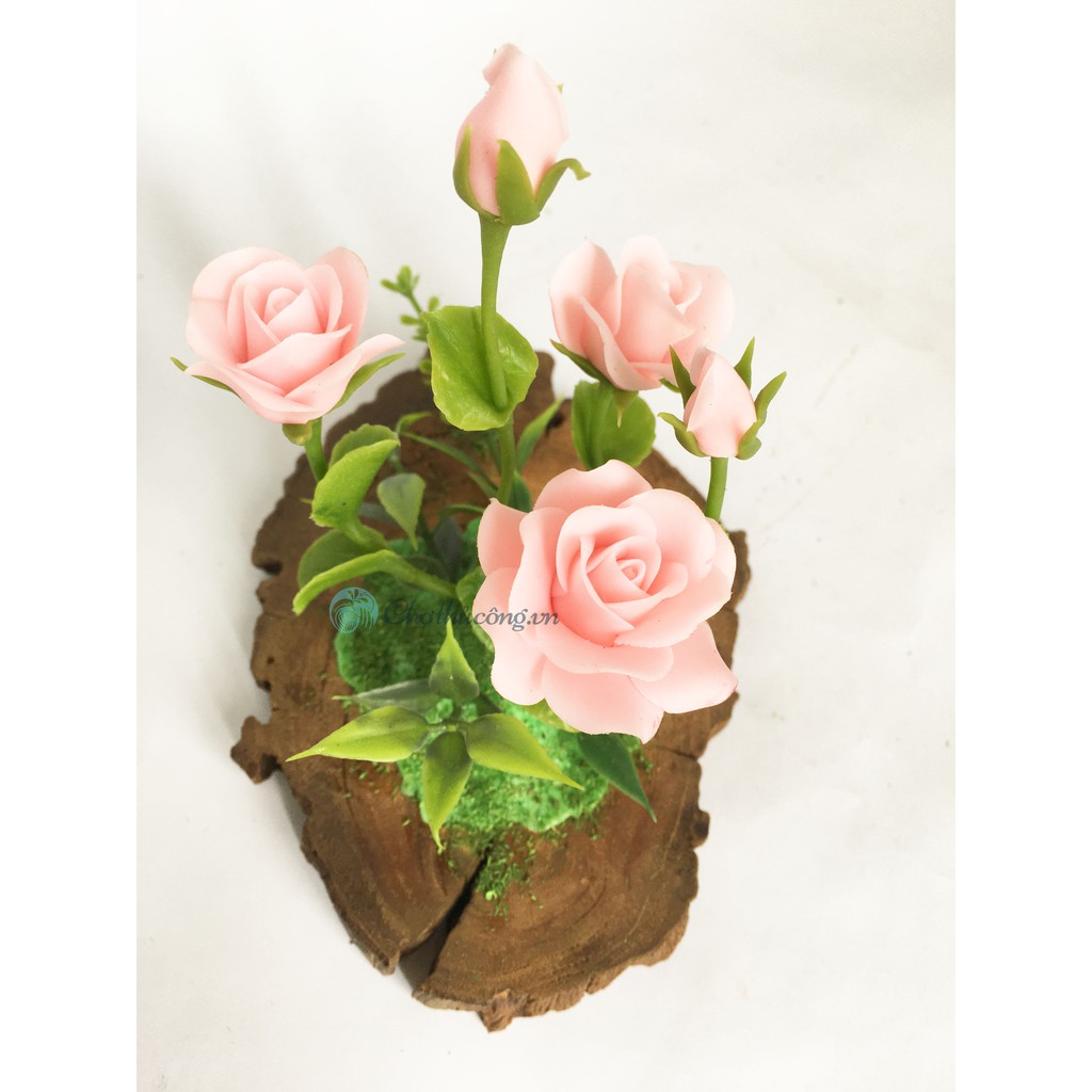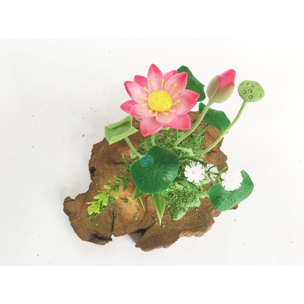 Nhà cửa & Đời sống > Trang trí nhà cửa > Hoa trang trí || Hoa đất sét mini Hoa hồng - Hoa sen handmade kết hợp khoanh gỗ tự nhiên vintageCòn hàng