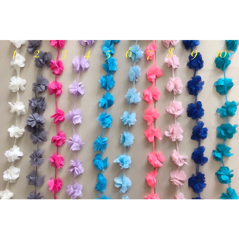Hoa dây chifon dùng trang trí phụ kiện may mặc1 dây 13 bông