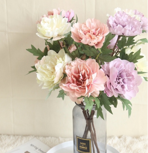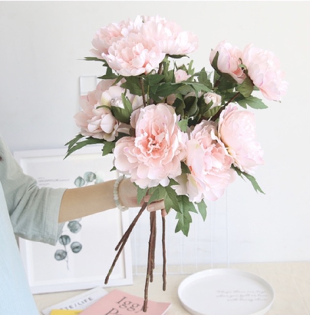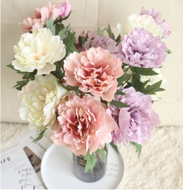 Nhà cửa & Đời sống > Trang trí nhà cửa > Hoa trang trí || Hoa giả - Cành hoa mẫu đơn lụa 3 bông xinh xắn decor chụp ảnhCòn hàng