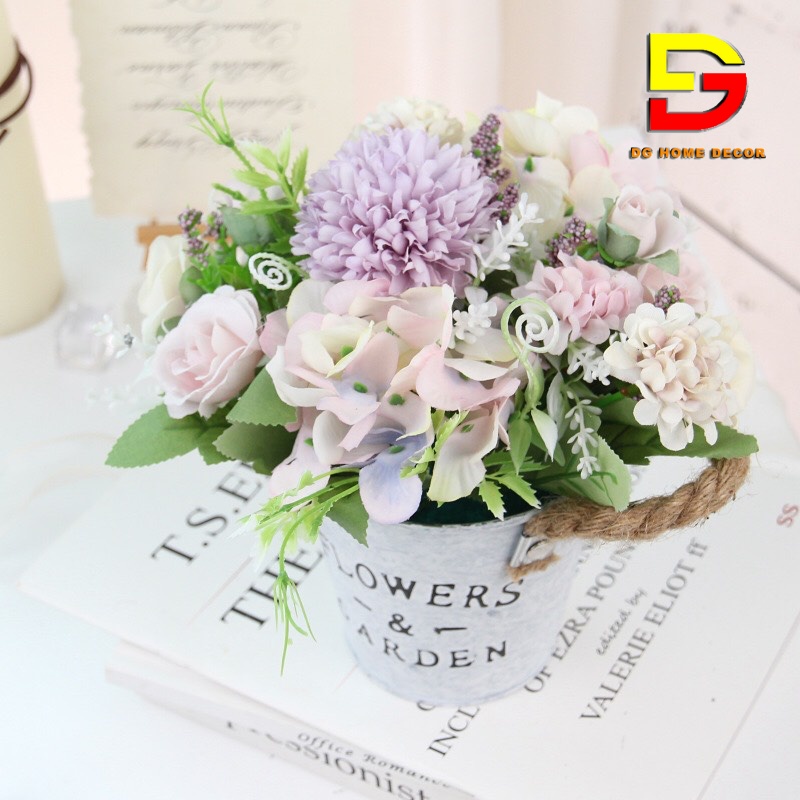 Hoa Giả, Giỏ Hoa Cẩm Tú Cầu Cao Cấp Cao 20cm Trang Trí Bàn Trà, Kệ Tủ Phong Cách Vintage DG-13