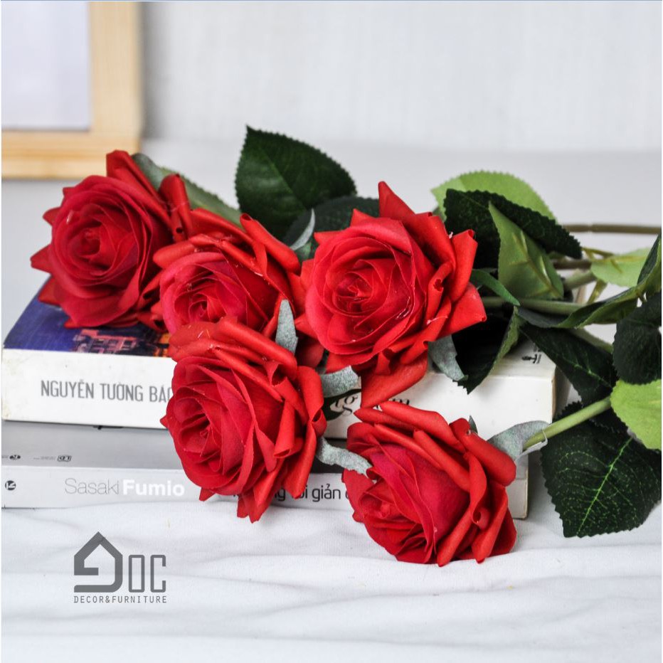 Sản phẩm hoa hồng giả thích hợp cắm với bình thủy tinh, bình gốm hay đơn giản làm chụp ảnh cá nhân rất hiện đại