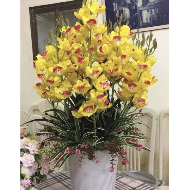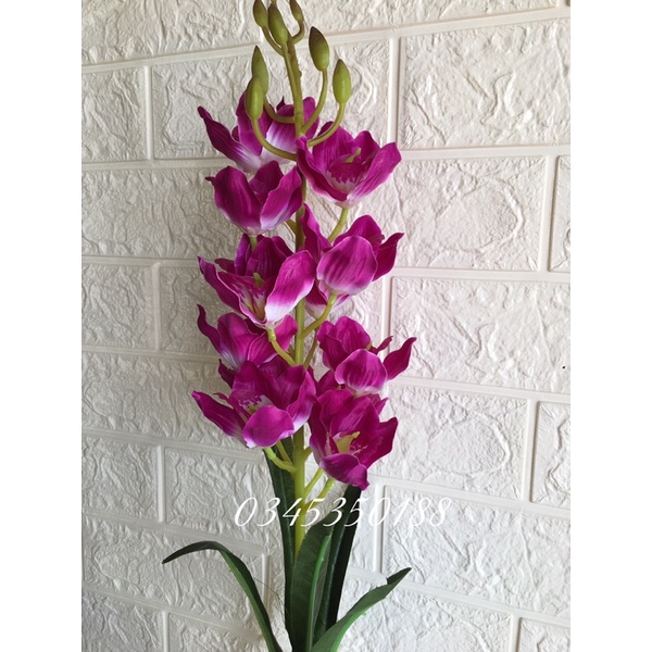 Hoa giả hoa lụa/ cành hoa địa Lan 13 bông cành dài 80 cm decor siêu đẹp