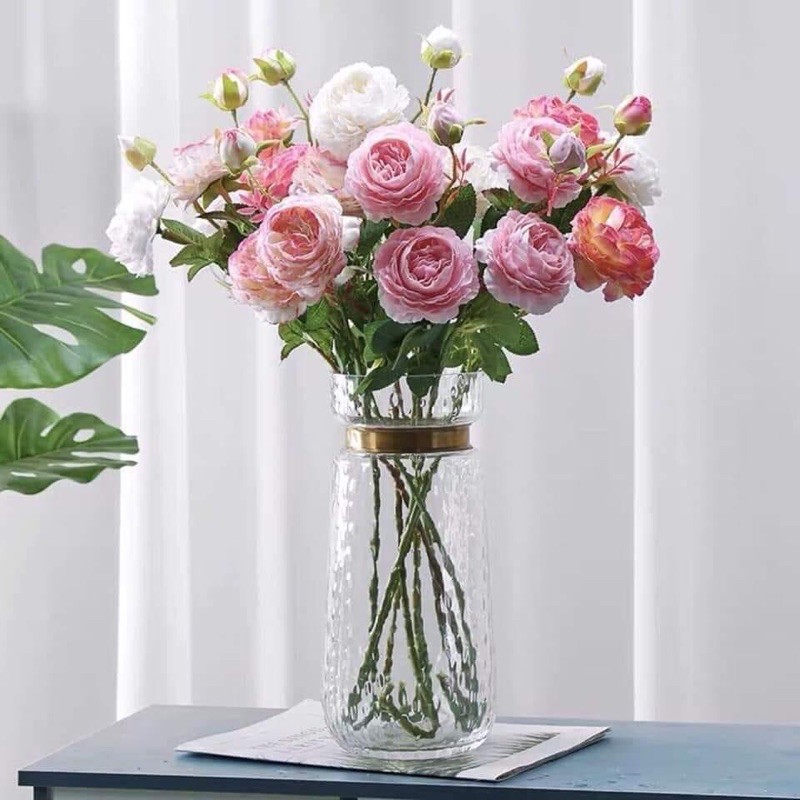 Nhà cửa & Đời sống > Trang trí nhà cửa > Hoa trang trí || Hoa giả /Hoa lụa - Cành hoa hồng mẫu đơn 2 bông 1 nụ loại đẹpCòn hàng