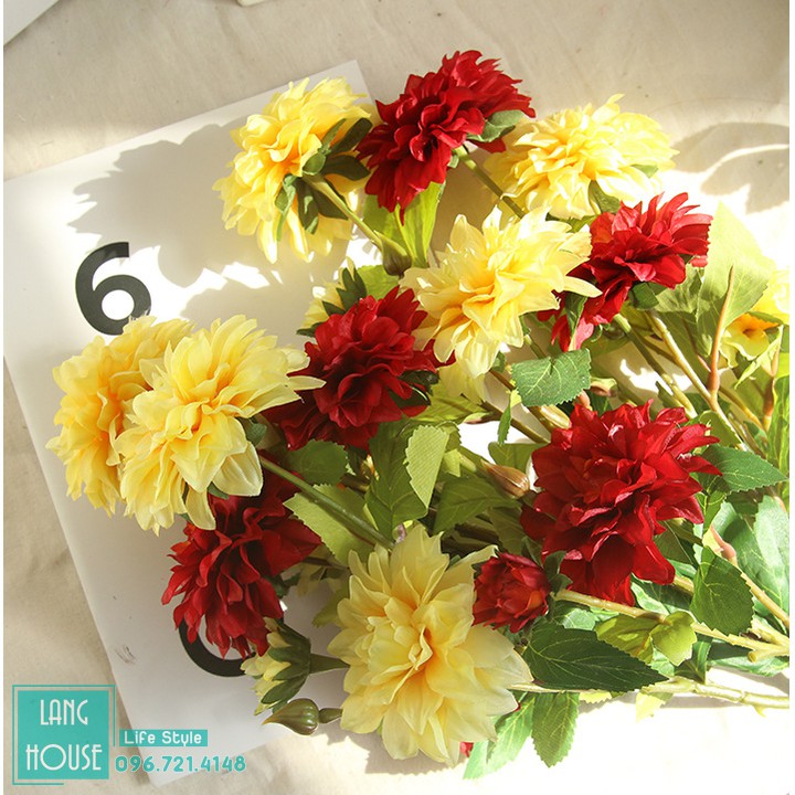 Nhà cửa & Đời sống > Trang trí nhà cửa > Hoa trang trí || Hoa Giả Hoa Lụa - HOA THƯỢC DƯỢC CAO CẤP Giống Thật 1 Cành 4 BôngCòn hàng