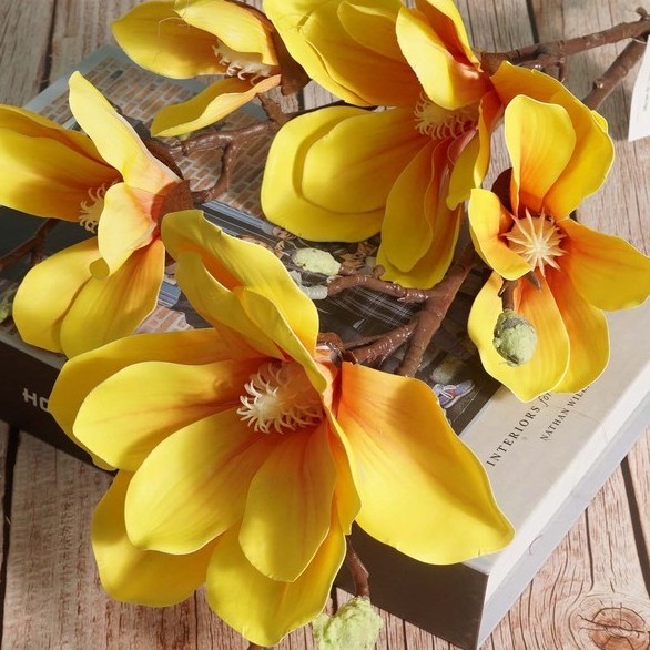 Nhà cửa & Đời sống > Trang trí nhà cửa > Hoa trang trí || Hoa giả/ Hoa Mộc Lan cao su 5 bông cao cấp loại dài 90cm - 1 cànhCòn hàng