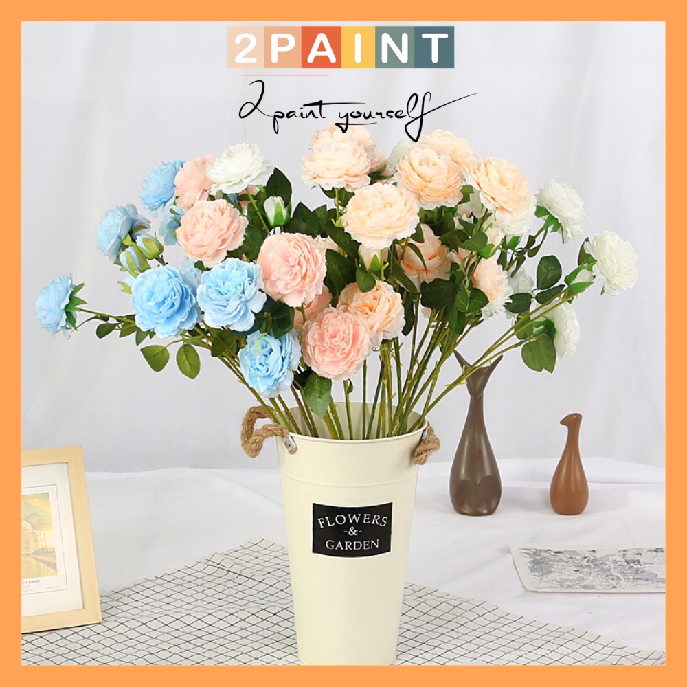 Hoa giả decor trang trí cành mẫu đơn 3 bông phong cách Hàn Quốc 2PAINT