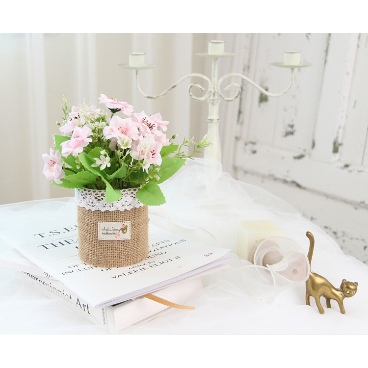 [Chất liệu]: Hoa được làm bằng nhựa, chậu hoa bằng bằng vải bố dễ thương
