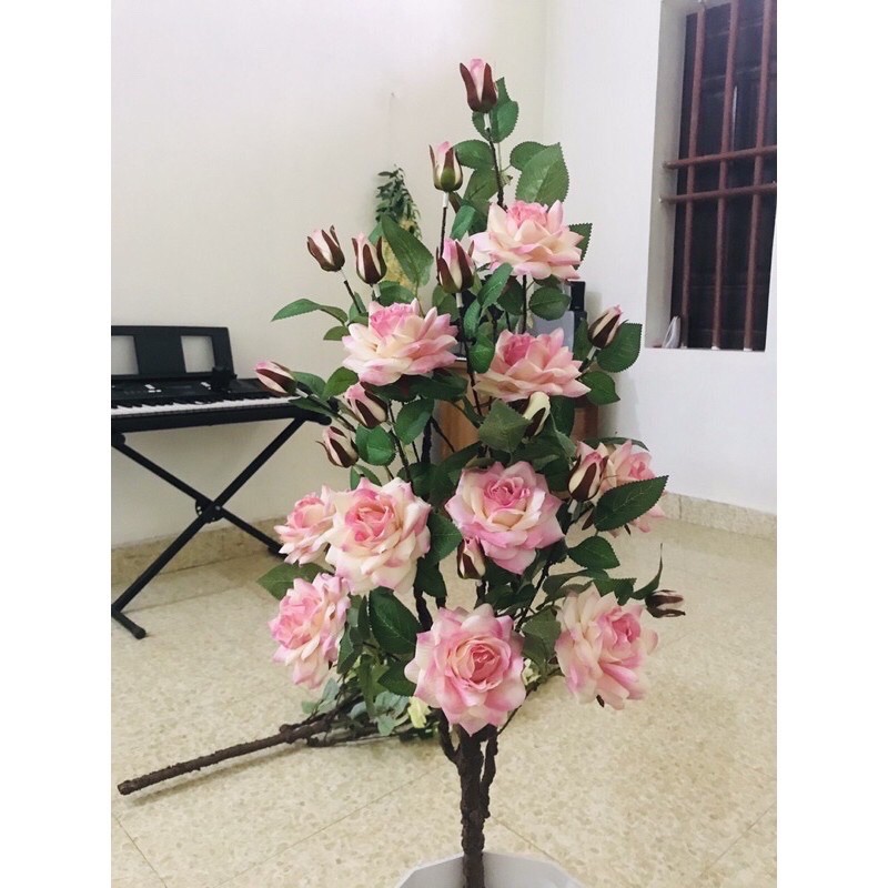 Cây hoa hồng cổ cao 1m siêu đẹpchất liệu hoa vải lụa