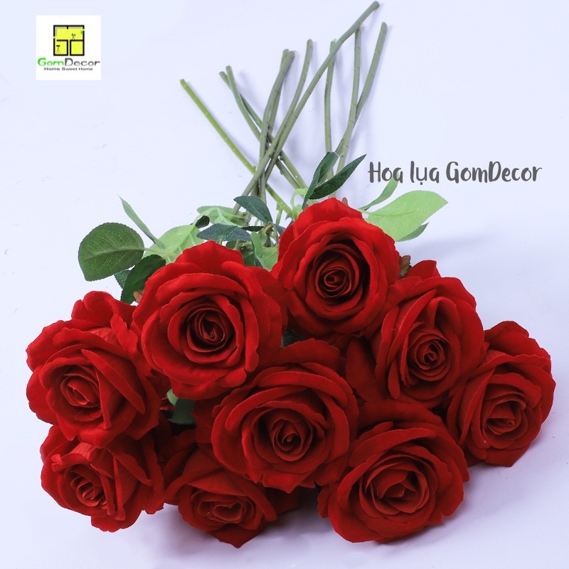 Nhà cửa & Đời sống > Trang trí nhà cửa > Hoa trang trí || Hoa hồng nhung đỏ hoa lụa cao cấp đẹp như thật cành dài 75cmCòn hàng