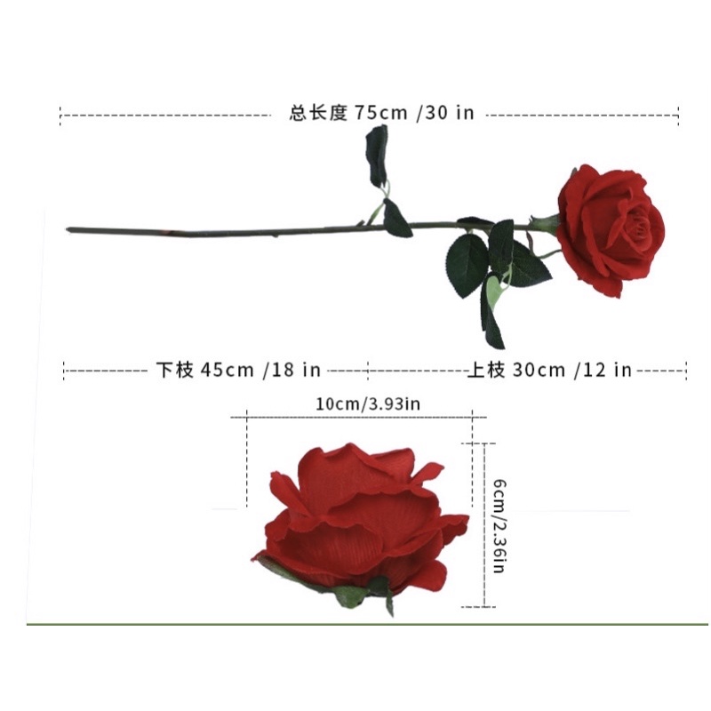 Hoa hồng nhung đỏ hoa lụa cao cấp đẹp như thậtchiều cao: 75cm. đường kính bông 10cm