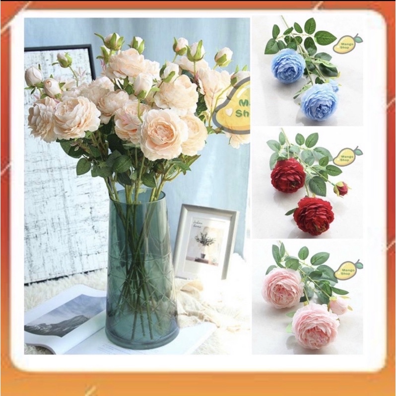 Giới thiệu Hoa hồng vải lụa trang trí 1 cành có 2 hoa , 1 nụ size to