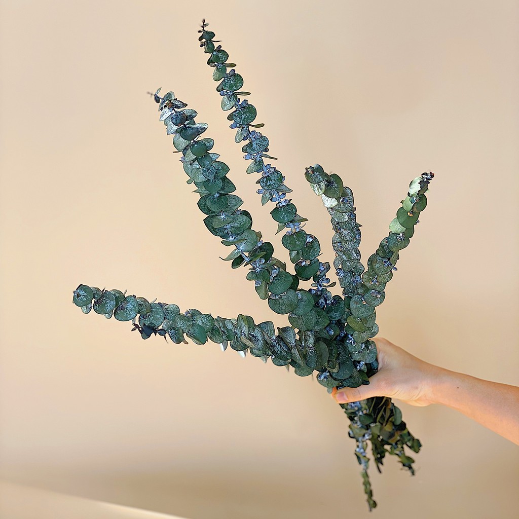 - Chất liệu: Cành lá khuynh diệp Eucalyptus, Hoa thật ướp khô, trưng được nhiều năm