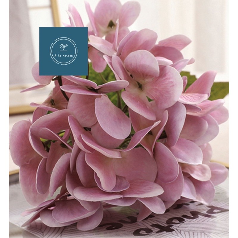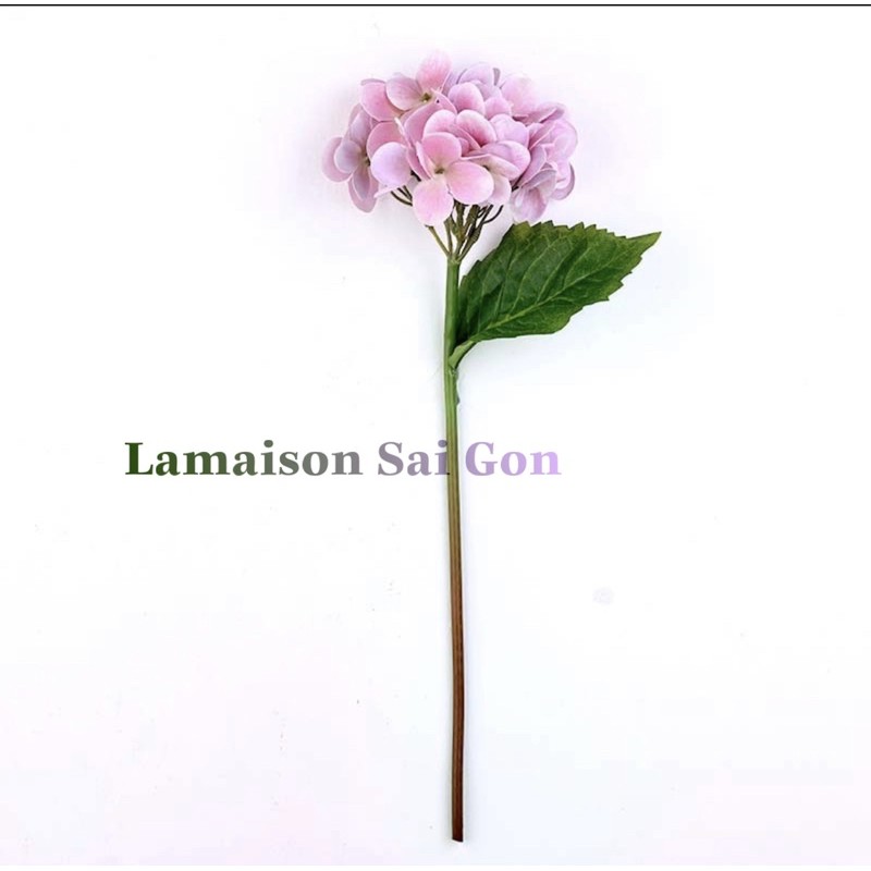 Hoa lụa - cành hoa cẩm tú cầu lá to loại 1, phủ sáp mịn, hoa decor hoa lụa cao cấp