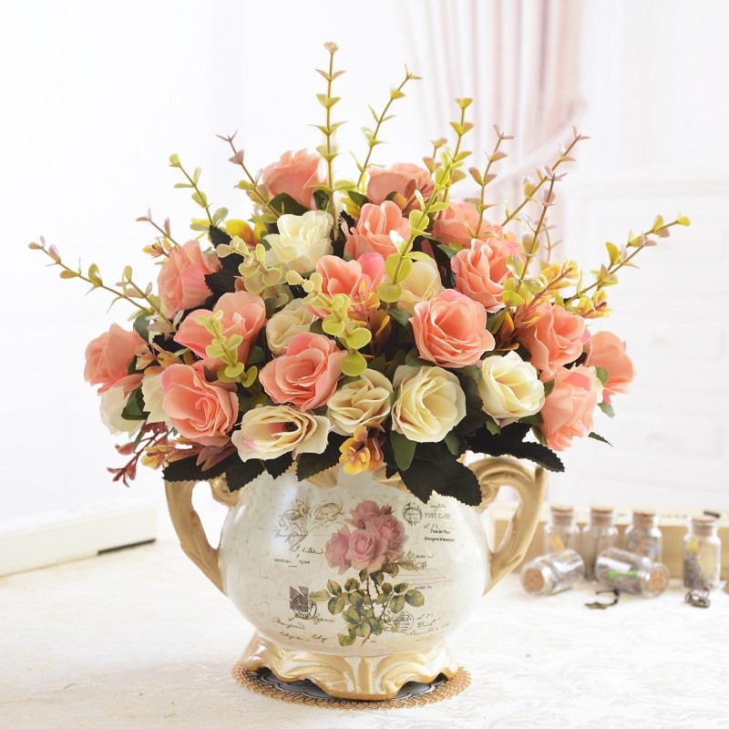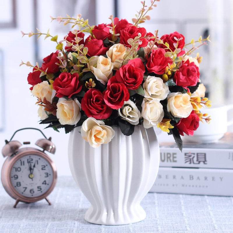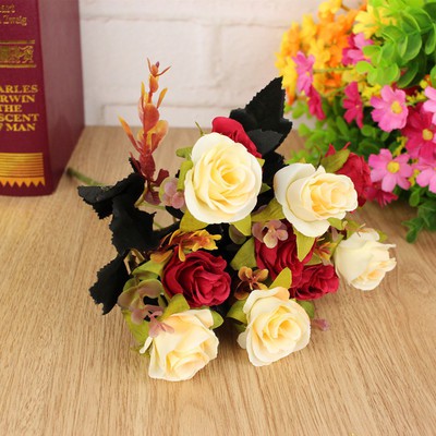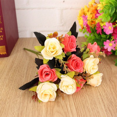 Nhà cửa & Đời sống > Trang trí nhà cửa > Hoa trang trí || Hoa lụa, cành hoa hồng 10 bông mix màu cao cấp điểm lá sang trọngCòn hàng