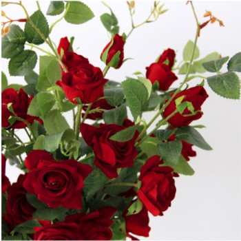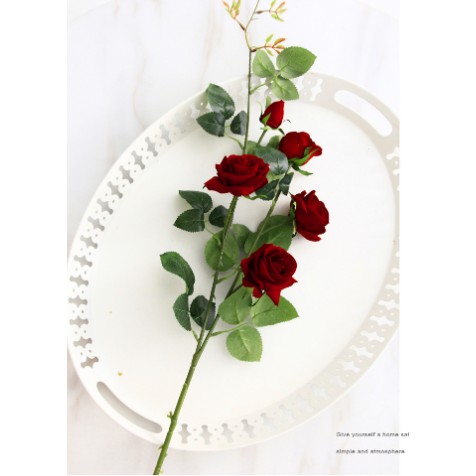 [HOA LỤA] Cành hồng nhung lụa 5 nụ siêu đẹp