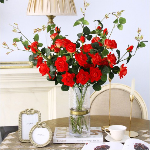 Nhà cửa & Đời sống > Trang trí nhà cửa > Hoa trang trí || [HOA LỤA] Cành hồng nhung lụa 5 nụ siêu đẹpCòn hàng