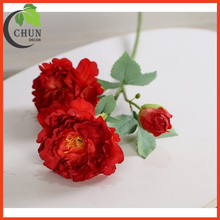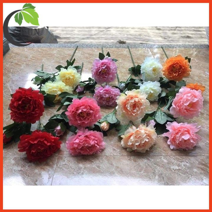 Giới thiệu Hoa lụa cao cấp, cành hoa mẫu đơn 2 bông 1 nụ dài 70cm