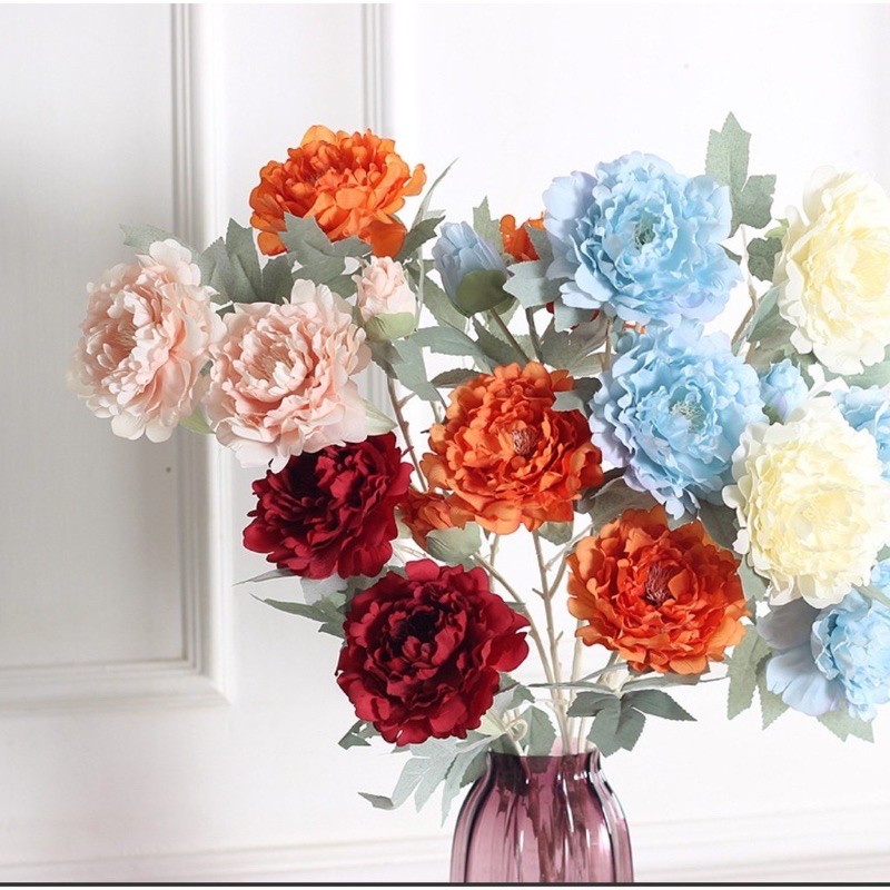 Nhà cửa & Đời sống > Trang trí nhà cửa > Hoa trang trí || Hoa lụa cao cấp, hoa mẫu đơn giả 2 bông 1 nụ cỡ lớn trang trí nhà cửa sang trọngCòn hàng