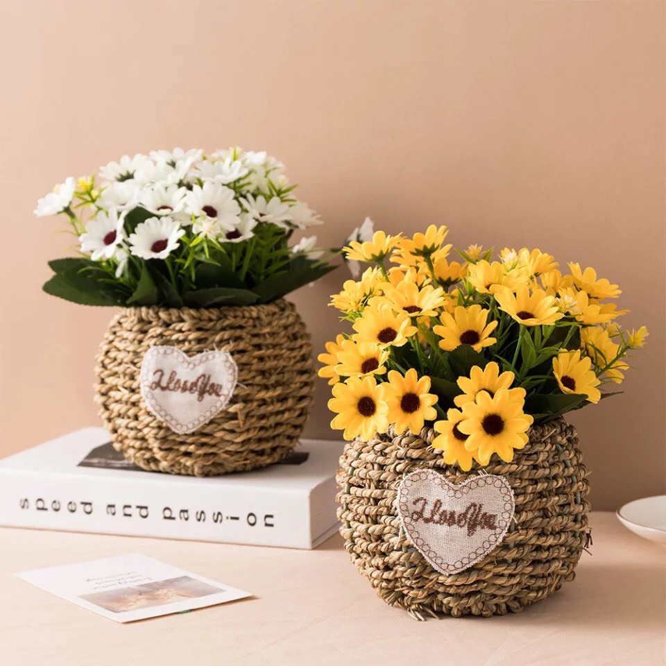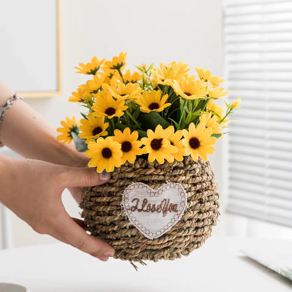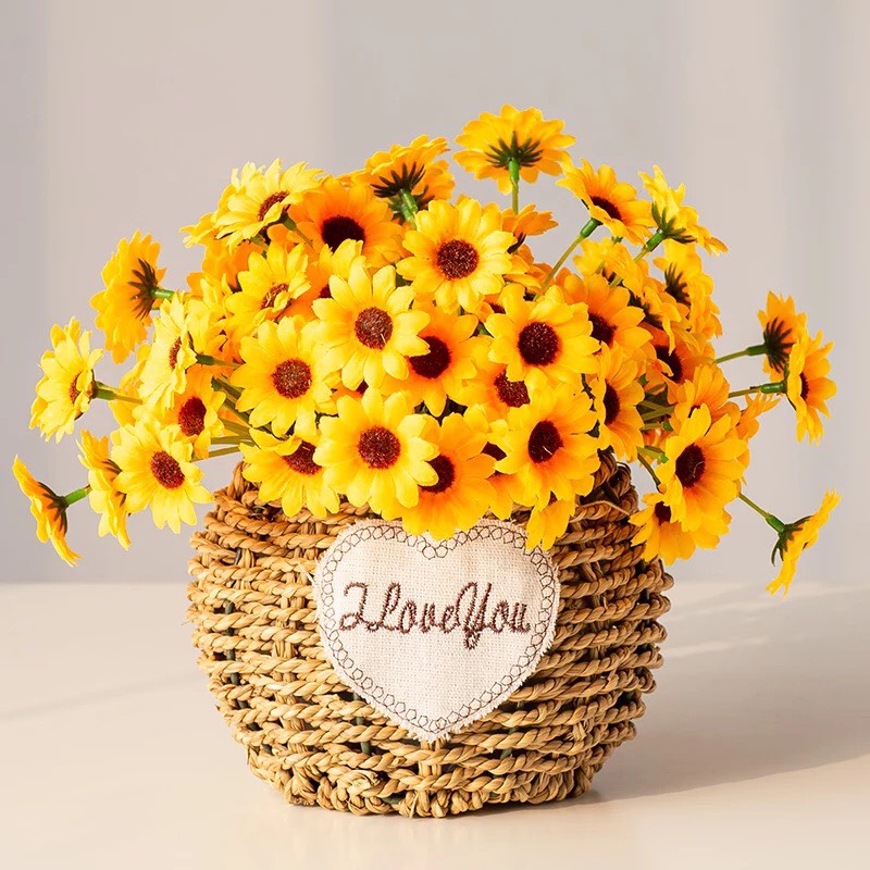 Hoa Lụa - Giỏ Hoa Hướng Dương Giả Mây Cắm Sẵn Trang Trí Để Bàn Trà Phòng Khách, Quán Cafe, Nhà Hàng