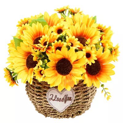 Giới thiệu Hoa Lụa - Giỏ Hoa Hướng Dương Giả Mây Cắm Sẵn Trang Trí Để Bàn Trà Phòng Khách, Quán Cafe, Nhà Hàng