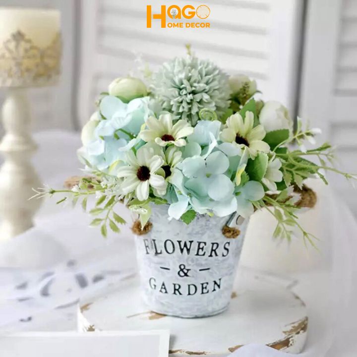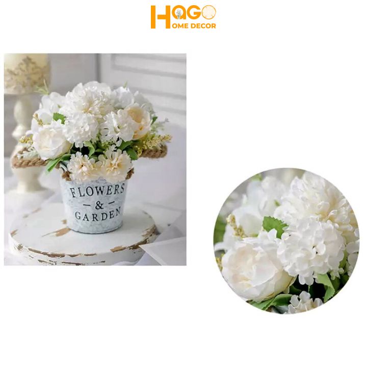 Giới thiệu Hoa lụa, hoa giả, chậu hoa cẩm tú cầu mix cao 20cm phong cách Hàn Quốc