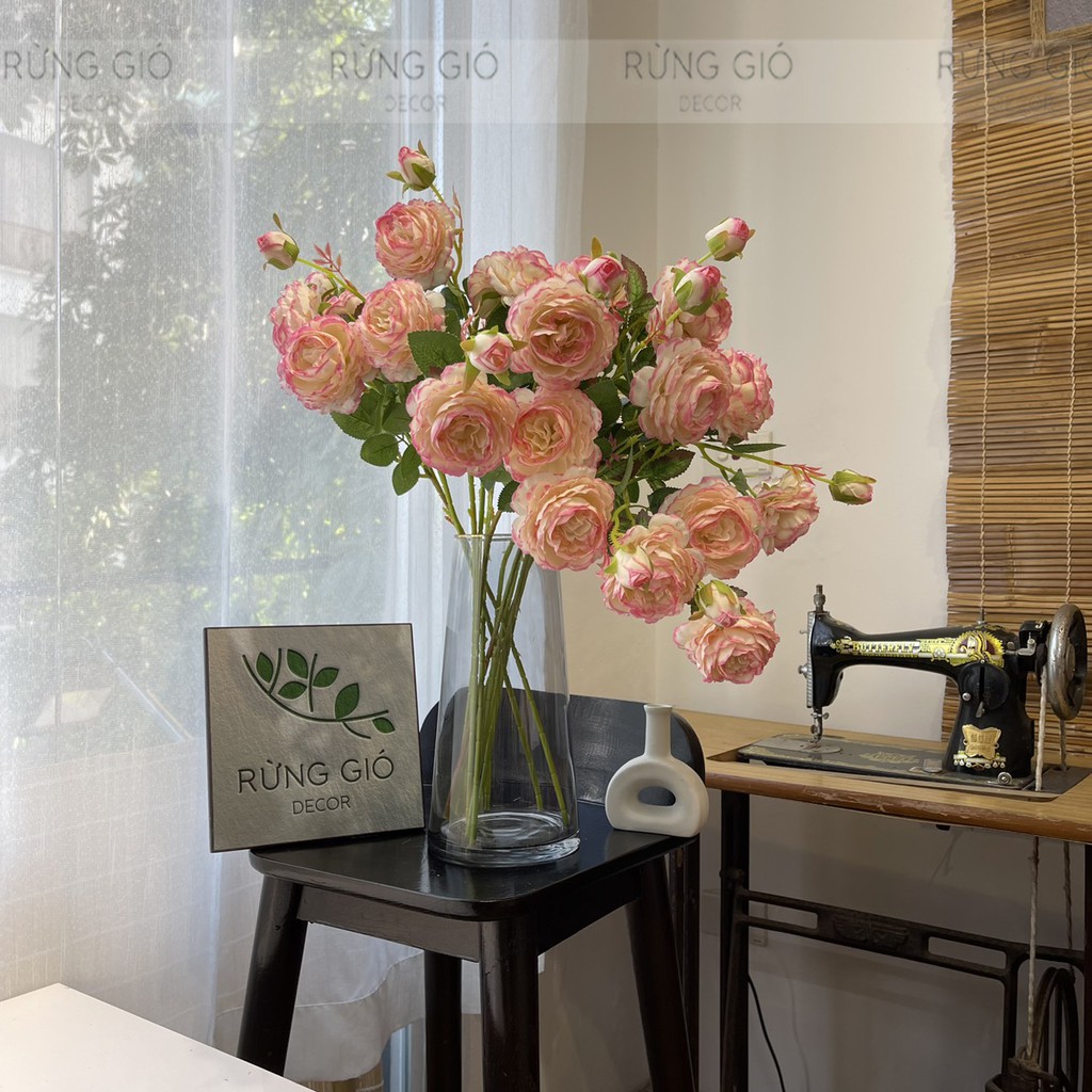 [ Hoa Lụa ] Hoa mẫu đơn cành lớn 3 bông, hoa giả nhân tạo, giá bán cho 1 cành cao 61cm gồm 2 bông và 1 nụ ở trên