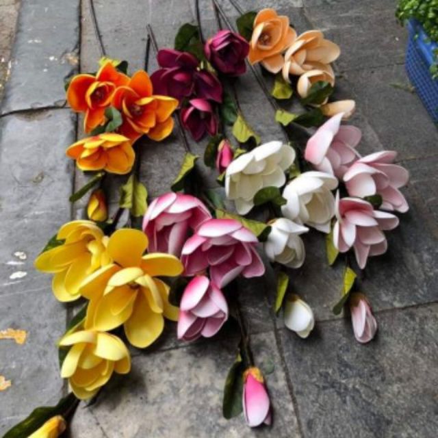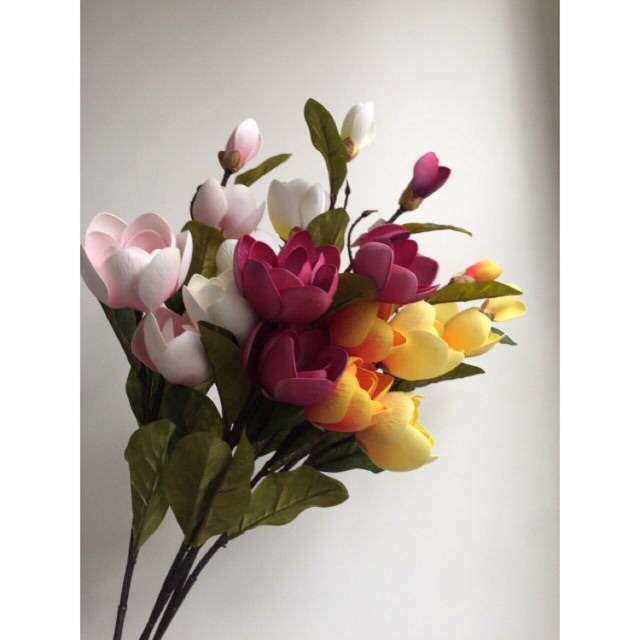 Cành hoa mộc lan 3 bông 1 nụ to.Có các màu Trắng - Hồng phớt - Hông đậm - Cam- Vàng.