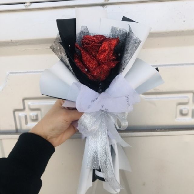 Hoa sáp nhũ 1 bông gói như hình hoặc thay đổi giấy gói 1 chút nhưng đảm bảo nguyên tắc vẫn đẹp hài hòaCall 0966632788 nếu cần gấp