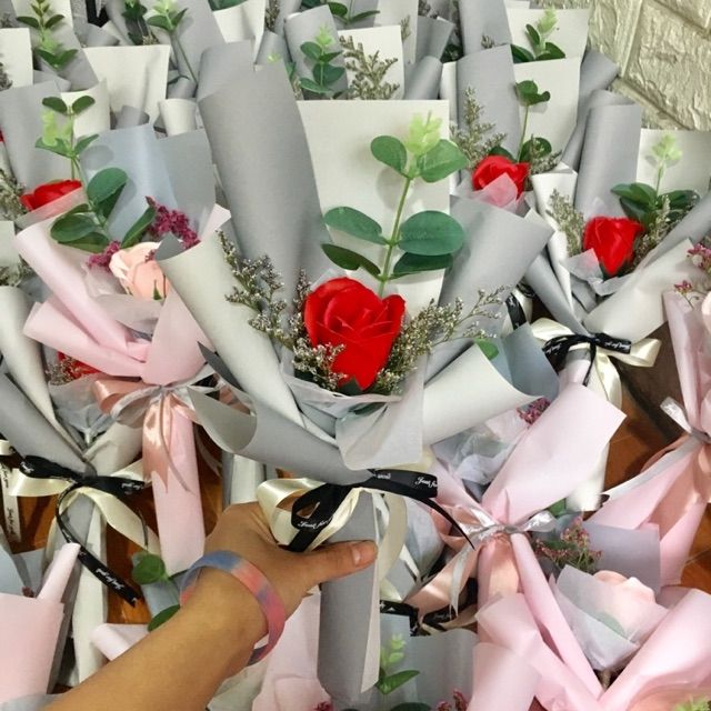 Hoa sáp1 bông gói như hình hoặc thay đổi giấy gói 1 chút nhưng đảm bảo nguyên tắc vẫn đẹp hài hòaKhách chọn màu ib shop nhé