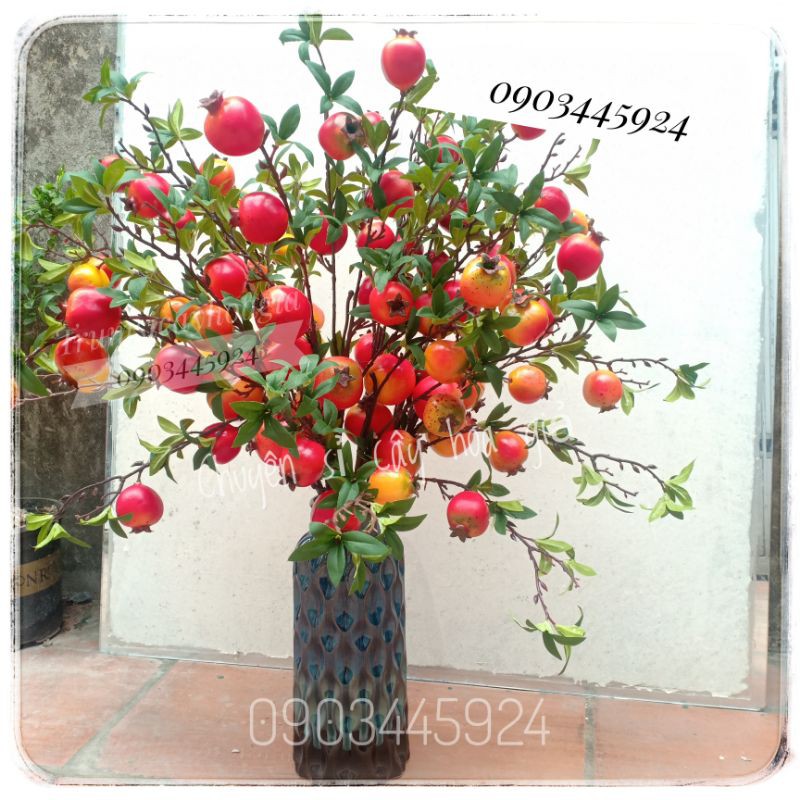 * Cành lựu 7 quả mô phỏng giống thật trang trí biểu trưng cho sự xung túc,no đủ.*Chất liệu : Xốp phủ casu,thân nhựa bọc lõi thép có thể uốn thoải mái,lá vải 4 cánh xịn sò.