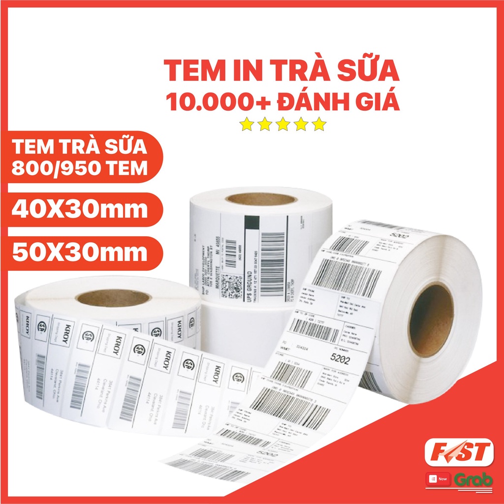 [Hỏa Tốc] Giấy in Tem Trà Sữa 50x30 (950 tem), 40x30 (800 tem), Giấy In Decal Nhiệt, In Bill, Dán Ly, Trà Chanh