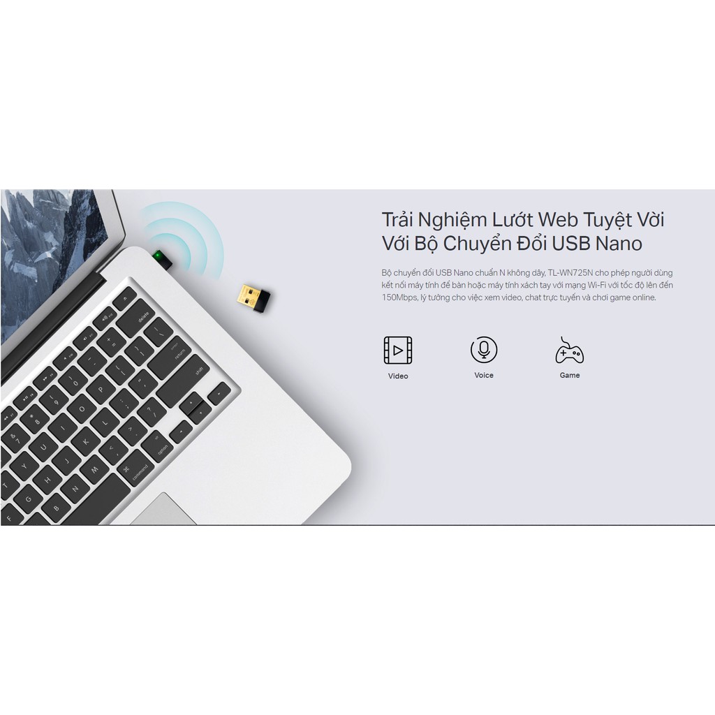 ✔️Sản phẩm bao gồm: Bộ chuyển đổi USB Nano Wi-Fi chuẩn N TL-WN725N