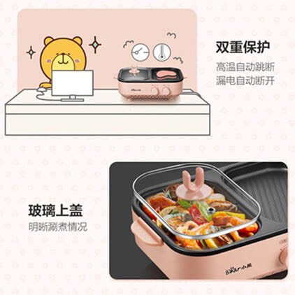 [Hỏa Tốc - HCM] Chảo Điện Nướng Và Lẩu Mini Đa Năng 2in1 Bear DKL-C12D1 | Hàng Chính Hãng | Bảo Hành 18 TH|Ngocvienstore