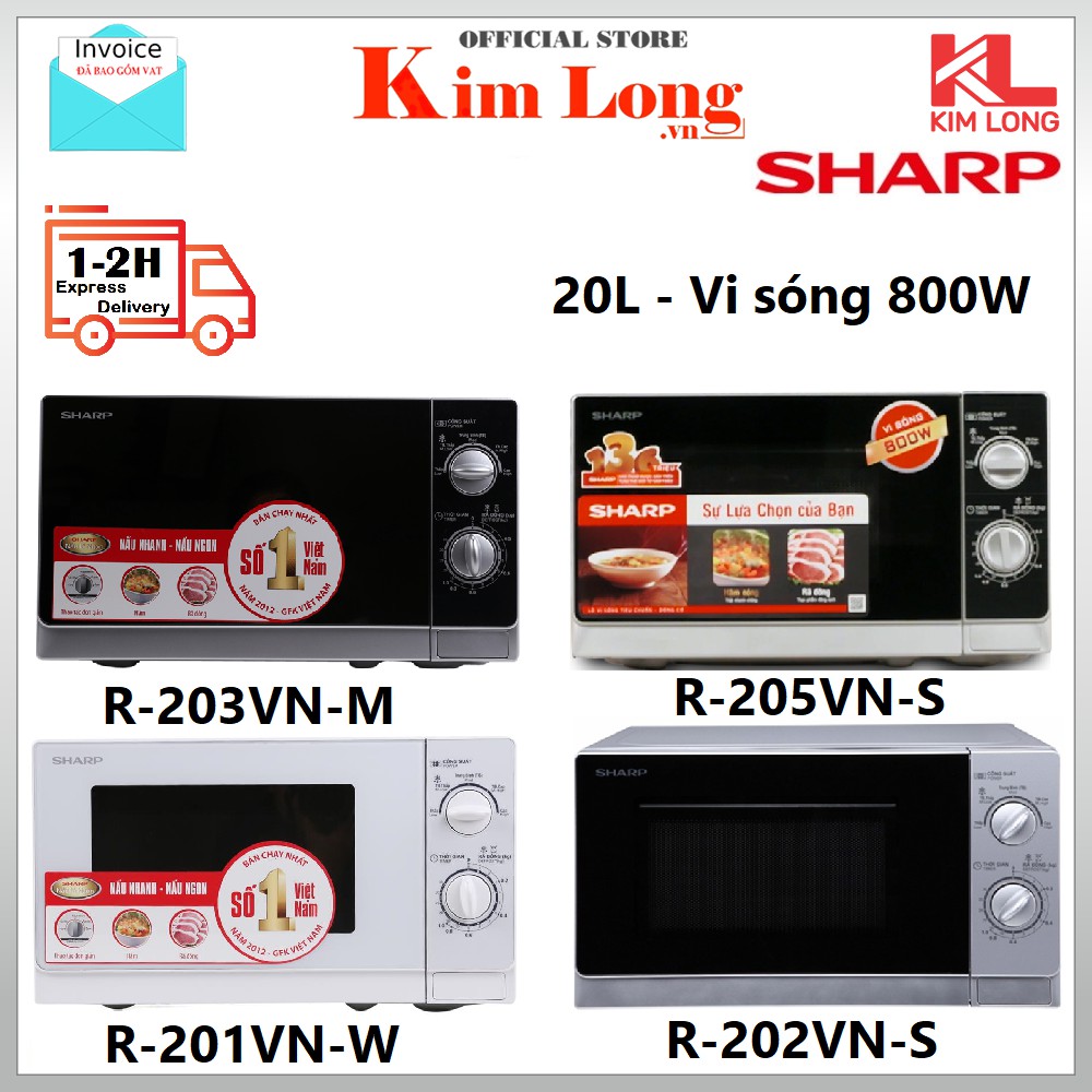 Lò Vi Sóng Cơ Sharp 20L R-201VN-W I R-202VN-S I R-203VN-M I R-205VN-S : khác nhau về màu sắc , tính nhưng như nhau.Bảo hành chính hãng 12 tháng toàn quốc bằng phiếu bảo hành hành Sharp Việt Nam