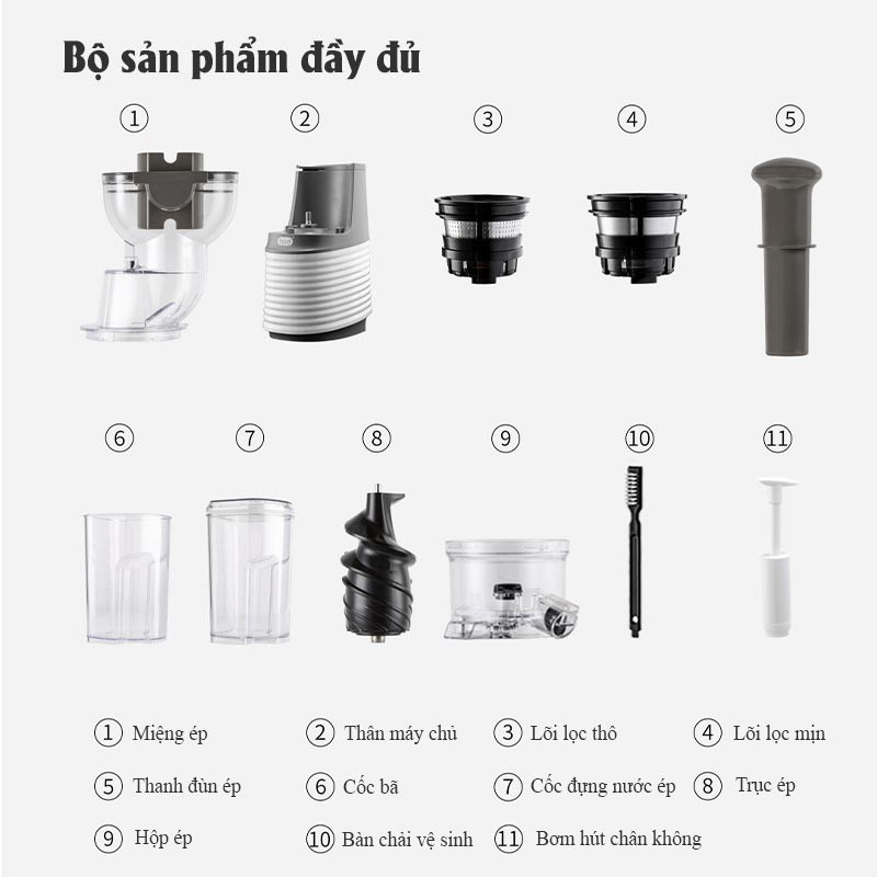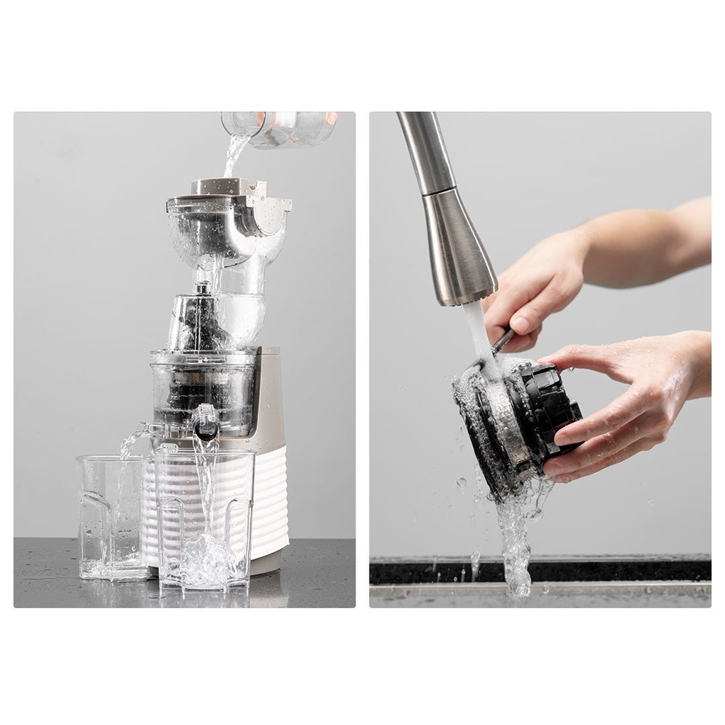 ✔ Thiết kế tiện lợi với việc vệ sinh sơ chế chỉ cần đổ nước từ trên xuống,thiết kế tháo rời dễ dàng vệ sinh từng bộ phận. Tích hợp bơm hút chân không cốc nước ép giúp bảo quản thành phẩm dài lâu.