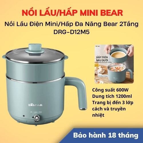 [Hỏa Tốc - HCM] Nồi Lẩu Điện Mini/Hấp Đa Năng Bear 2Tầng Dung Tích 1.2L DRG-D12M5 | Hàng Chính Hãng | BH 18T | LSB Store