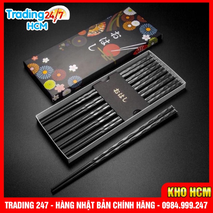 [Hỏa tốc HCM] Set 5 Đôi Đũa Chống Trơn Chống Nấm Mốc Cao Cấp NỘI ĐỊA NHẬT BẢN