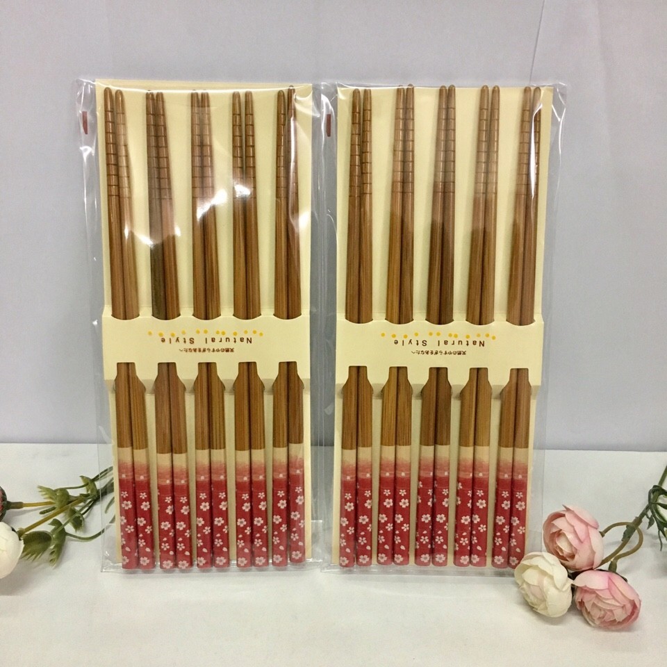 [Hỏa tốc HCM] Set 5 Đôi Đũa Hoa Đỏ NỘI ĐỊA NHẬT BẢN