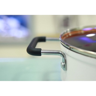 ✔ Phía trên cạnh nồi là hai quai cầm cố định chắc chắn được bao bọc bởi miếng nhựa chịu nhiệt màu đen, giúp người dùng dễ dàng cầm nắm khi nấu nướng đồng thời bảo vệ an toàn tránh tình trạng bị bỏng khi nồi đang nấu trên bếp