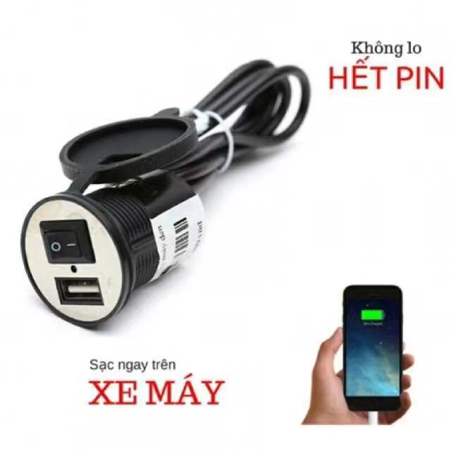 (Hỏa Tốc) Tẩu sạc xe máy , sạc điện thoại lắp xe máy 2,1A -12v ( sạc nhanh) , nối bình ắc quy xe máy usb, có nút bật tắt