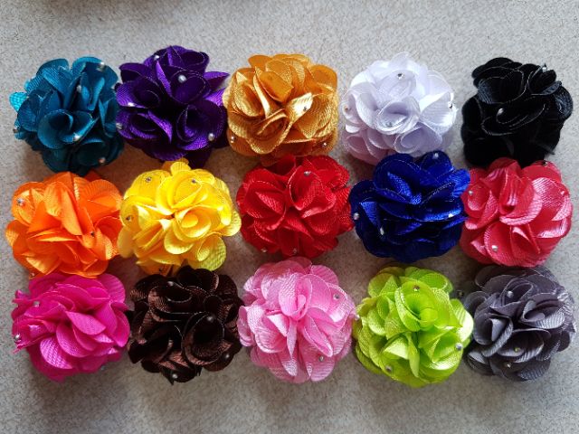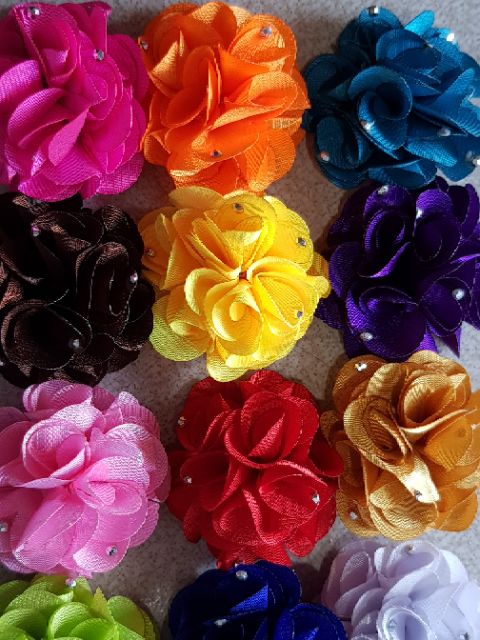 Hoa đc làm từ vải dùng trang trí mũ, giày, đồ cho trẻ em v.v. ..........Giá 5k/1 hoa.