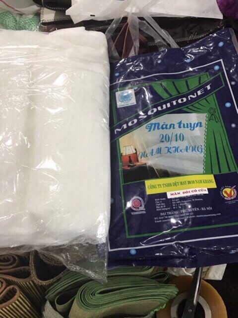 Màn đều màu trắng đựng trong túi của hãng dệt Việt Nam
