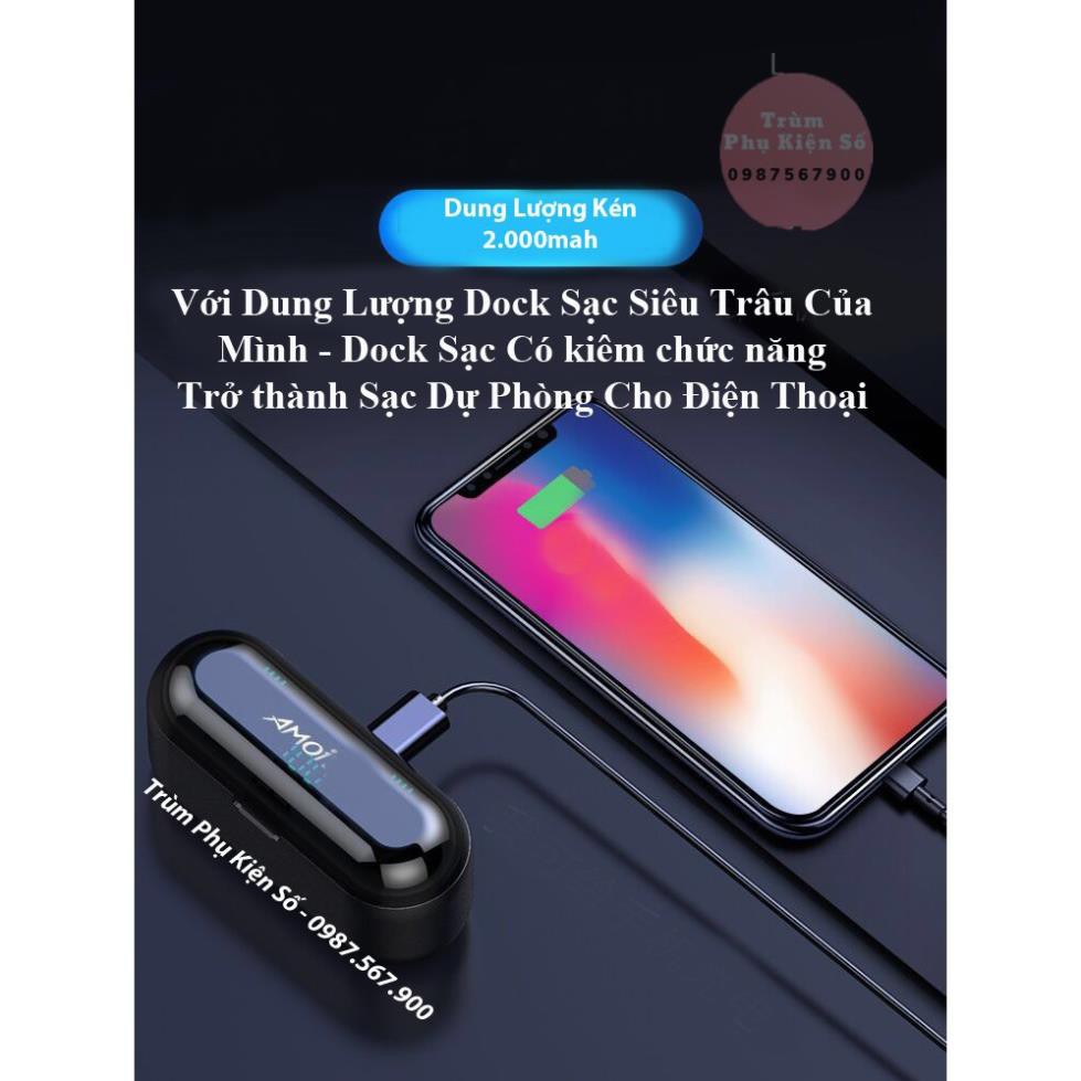 [HOÀN XU] Tai nghe Bluetooth 5.0 AMOI F9 Cảm ứng, Màn Hình Led, Kiêm Sạc Dự Phòng Cho Điện Thoại