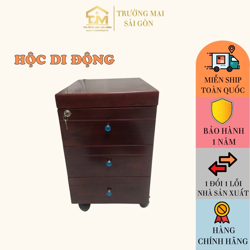 hộc tủ mini đựng đồ văn phòng di động Chất gỗ Mdf chống ẩm 3 kéo có khoá an toàn hiện đại Trường Mai