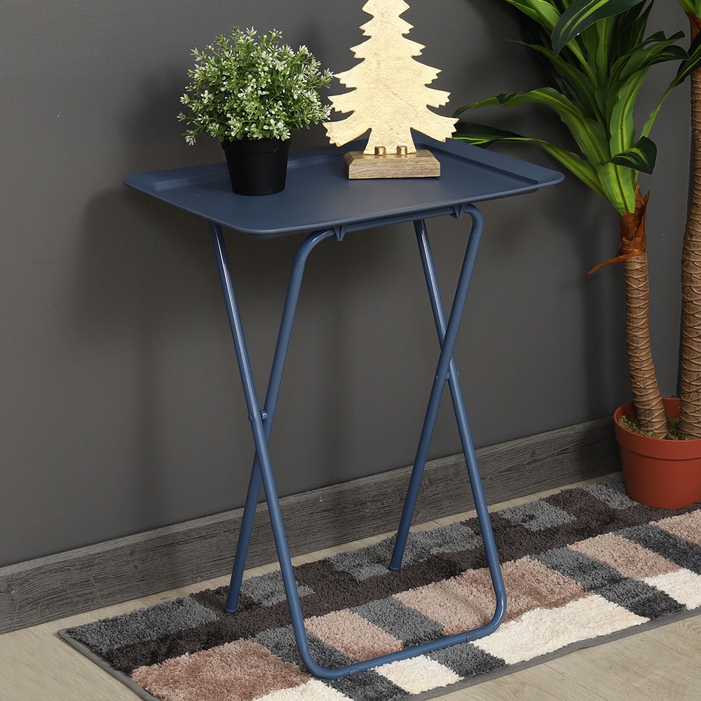 Nhà cửa & Đời sống > Nội thất > Bàn || HomeBase FURDINI Bàn gấp đa năng chân thép mặt bàn nhựa PP W52xH66xD37cm màu xanh đenCòn hàng