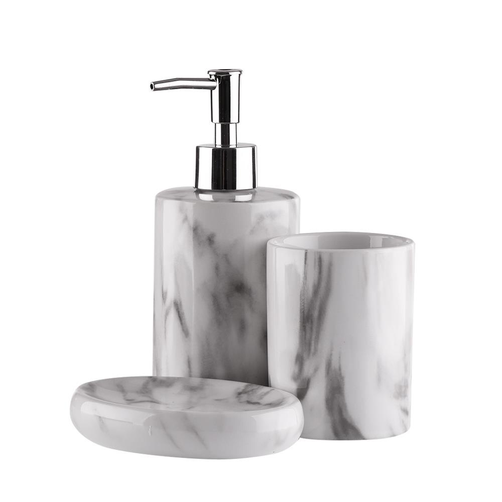 HomeBase MOYA Bộ đồ dùng nhà tắm 3 món bằng gốm CE1251A3 W19,5xH21xD8,2 màu trắng